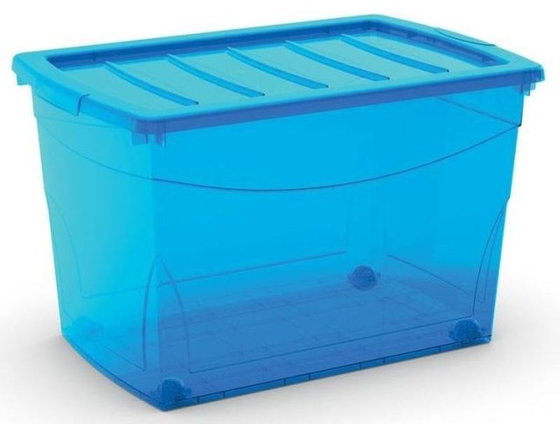 KIS Omnibox XL blau 60l auf RädernDie Aufbewahrungsbox aus Kunststoff kann in jedem Haushalt oder in jeder Werkstatt ihre Verwendung finden, sei es zur Aufbewahrung von Kleidungsstücken, Schuhen, Spielzeug oder anderen Gegenständen, die Sie übersichtlich aufbewahrt und vor Staub, Feuchte und anderen Unreiheiten geschützt haben wollen. Die blaue transparente Box KIS Omnibox XL prahl mit einem Volumen von 60 Litern, aber wenn es Ihnen nicht ausreicht, können Sie mehrere Stücke aufeinander stapeln. Die Transport-Räder ermöglichen eine einfache Übertragung und der Deckel lässt sich einfach auf seine Stelle zuklappen und schützt somit perfekt die aufbewahrten Sachen.