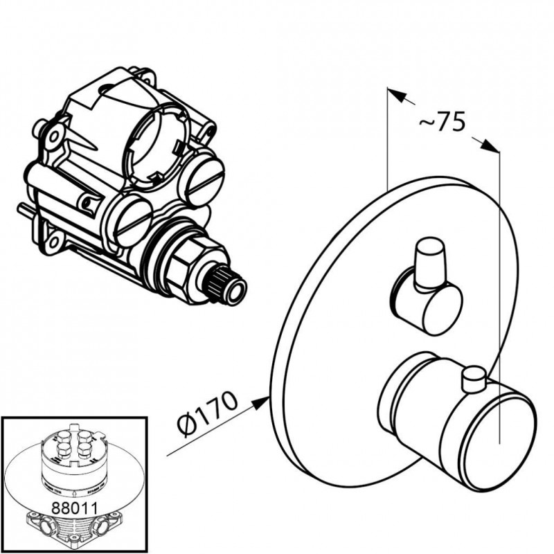 KLUDI BALANCE Unterputz-Thermostatarmatu Feinbau-Set m.Absperr- und Umstellventil Fertigmontagesatz zum Wandeinbaukörper, Hersteller KLUDI GmbH&Co KG, Typ KLUDI BALANCE Unterputz-Wanne/Brause-Thermostatarmatur Art. Nr. 528300575, Feinbau-Set mit Funktionseinheit als Fertigmontagesatz für Unterputz-Einheitskörper DN 20 KLUDI FLEXX.BOXX Art. Nr. 88011, mit Keramik-Absperrventil und Umstellung als Drehventil von Wannenfüll- auf Brause (als Absperr-Umstellventil), Abdeckrosette aus Kunststoff verchromt, mit Temperaturwähler, Grad Markierung sowie Temperatursperre 38GradC, Betätigungselemente aus Kunsstoff/Messing verchromt, Abdeckrosette D in mm 170, ohne Verlängerungs-Set Art. Nr. 7300600-00, Serie KLUDI BALANCE ohne Rohbau-Set KLUDI FLEXX.BOXX Art. Nr. 88011, Geräuschverhalten DIN 4109 Geräuschgruppe II, P-IX 18444/IICC Optimale Funktion nur in Verbindung mit KLUDI ProduktenDie Bilder können vom original Produkt/Artikel abweichen.