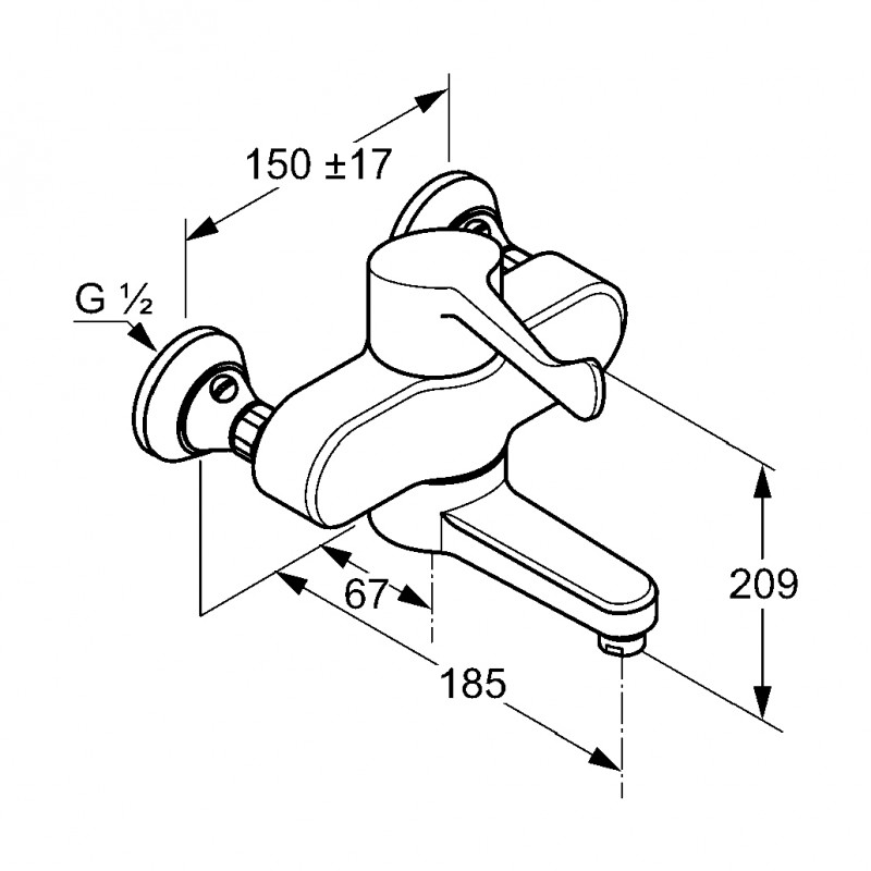 Wand-Einhandmischer DN 15Klinik-Armhebel