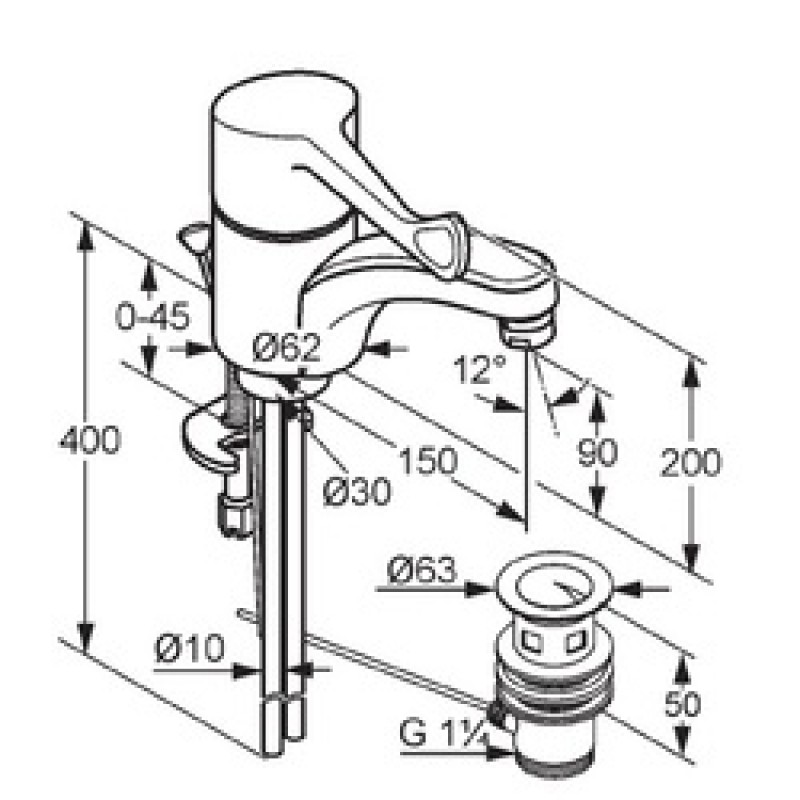 Waschtisch-Einhandmischer DN 8Klinik-Armhebel