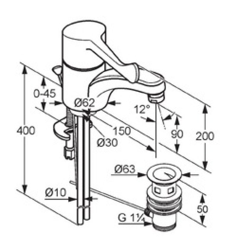 Waschtisch-Einhandmischer DN 8Klinik-Armhebel