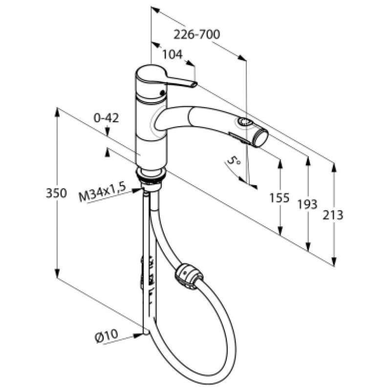 Trendo - Einhebelmischer Hochdruck mit SchlauchbrauseEinhebelmischer mit schwenk-/herausziehbarer Schlauchbrause