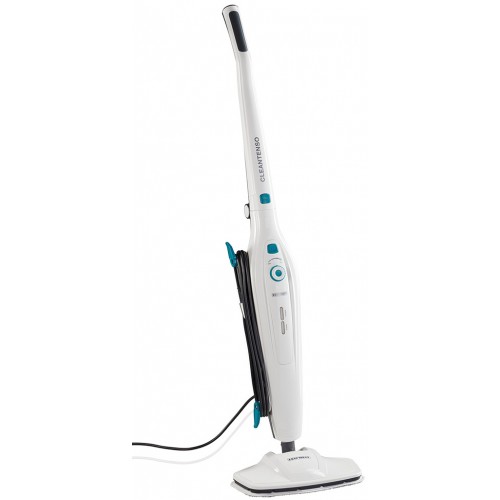 Der Dampfreiniger CleanTenso beseitigt mit seinem heißen Wasserdampf bis zu 99,99% der Viren und Bakterien. Die Intensität des Dampfes ist stufenlos regulierbar, so kann der Dampfreiniger auf Stein- und Fliesenböden genauso wie auf versiegelten Holzböden genutzt werden. Der XXL-Wassertank ist abnehmbar und lässt sich einfach befüllen. Er reicht für eine besonders lange Nutzungsdauer von 40 Minuten aus. Das Mikrofaser-Wischpad kann Schmutz optimal aufnehmen und ist bei 60 °C waschbar. Besonders praktisch sind zudem das extralange Kabel und der austauschbare Kalk-/Wasserfilter. Um den Dampfreiniger CleanTenso möglichst platzsparend zu verstauen, ist der Stiel abklappbar.