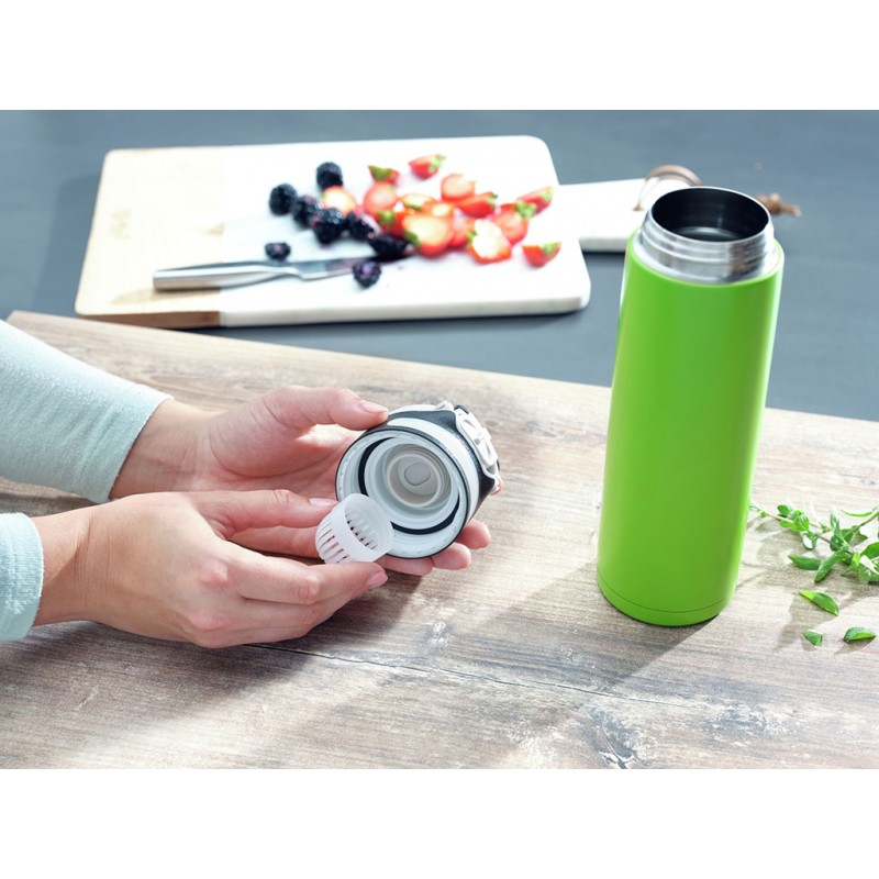 - Abnehmbares Filterelement gewährleistet angenehmes Trinken, auch wenn sich in diesem Obst oder Kräuter befinden