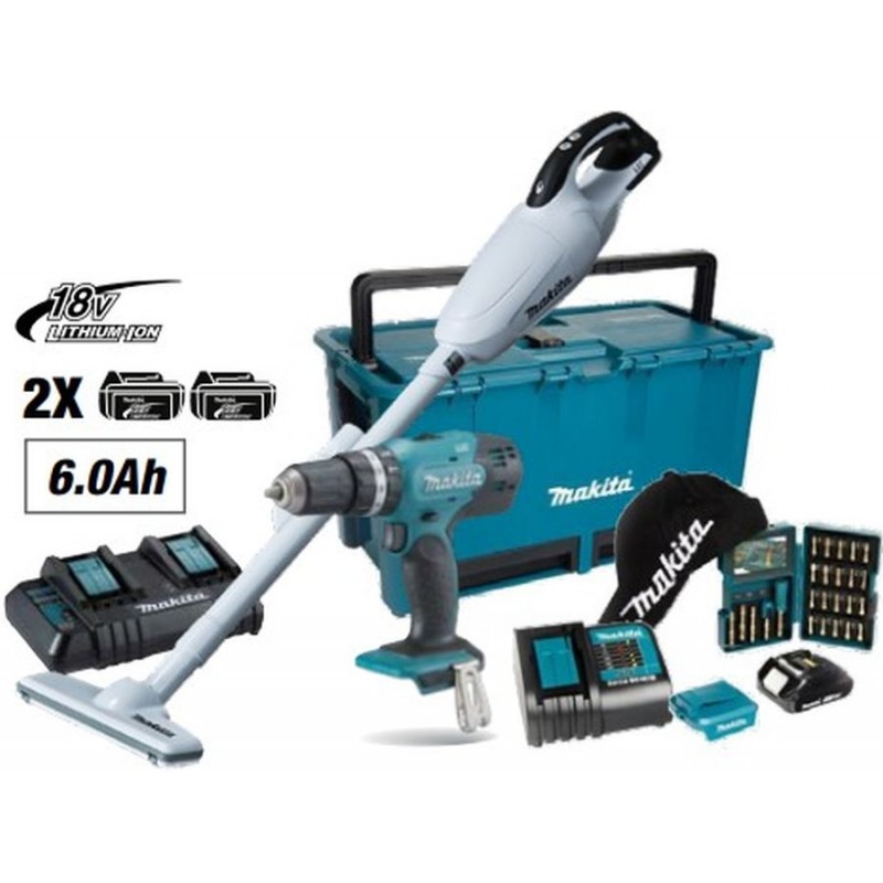 - Pro odeslání do Česka navštivte MAKITA HF2108-3 Aku šroubovák DHP453ZX11 +vysavač DCL181FZWX + 2x Aku 18V/6Ah + DC18SH