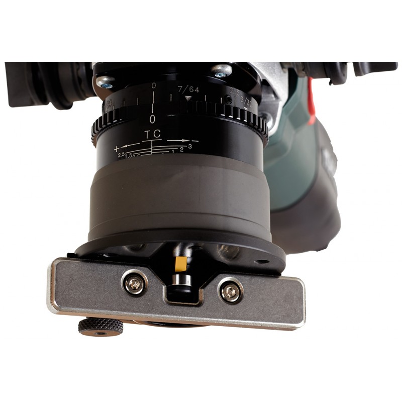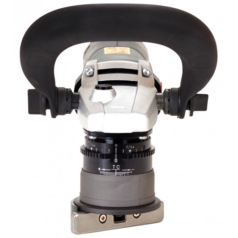 • One-touch Controller: patentierte, werkzeuglose Frästiefeneinstellung in 0,1-mm-Schritten; Rastpunkte für kurze Einstellzeiten, gegen ungewolltes Verstellen der Frästiefe beim Arbeiten