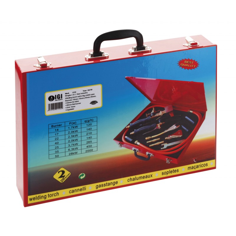 - Leistung: 1,7-28 kW- Set 7 Brenner, 2 Handgriffe, Ventil und Löt im koffer verpackt.