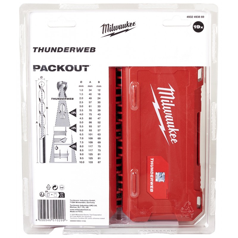 MILWAUKEE Satz Metallbohrer 1-10 mm HSS-G ThunderWeb 19 Stück (4932493869)