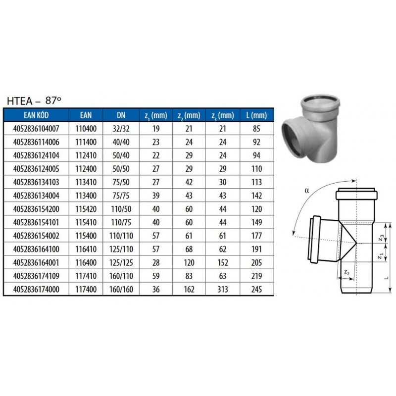 - Pro odeslání do Česka navštivte OSMA HTEA odbočka DN 110/75 87°