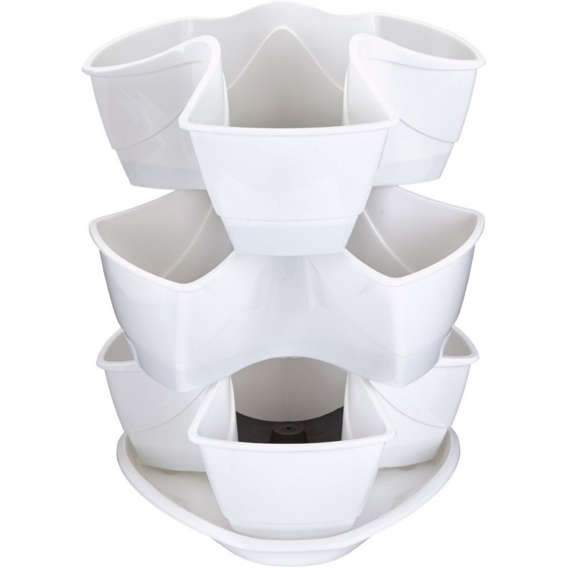 PROSPERPLAST COUBI 3-stöckige Blumenampel Ampel-Kräutertopf stehend 9 l, weiß DKN3003