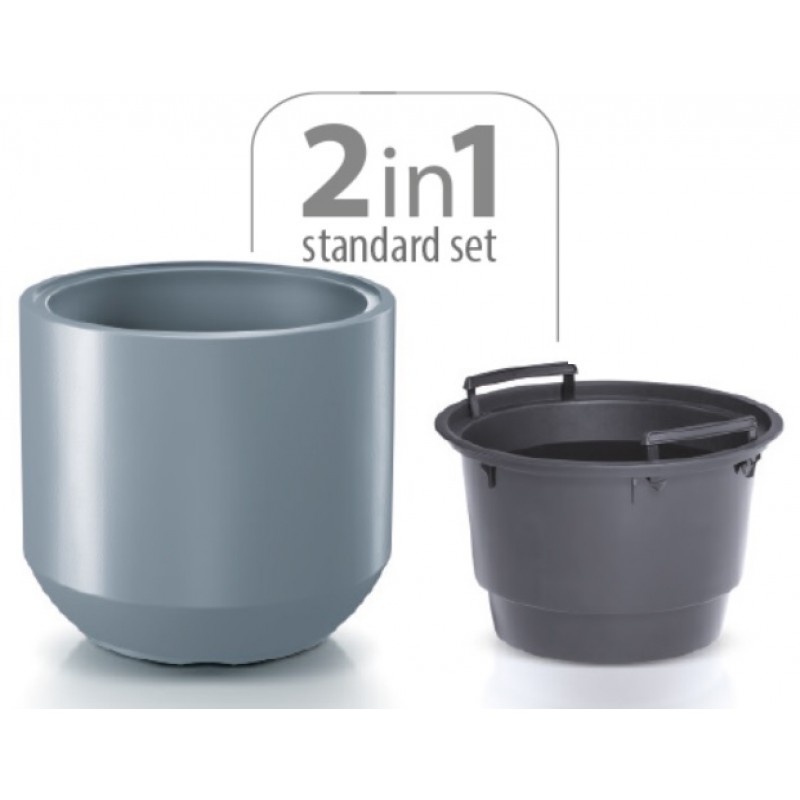 Blumentöpfe HEOS sind aus leichtem Kunststoff hergestellt und sind Wetter- und UV-beständig.Blumentöpf hat einen inneren Einsatz. Seine Vorteil ist die Fähigkeit, die Menge des Bodens in einen Topf zu reduzieren. Dank dem mitgelieferten Pflanzeinsatz ist das Bepflanzen sehr einfach.