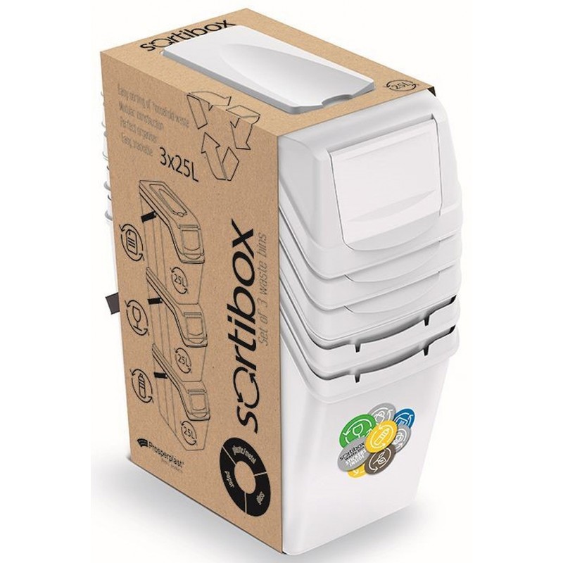 - Pro odeslání do Česka navštivte Prosperplast SORTIBOX II Sada 3 odpadkových košů 3x25l, bílá ISWB25S3