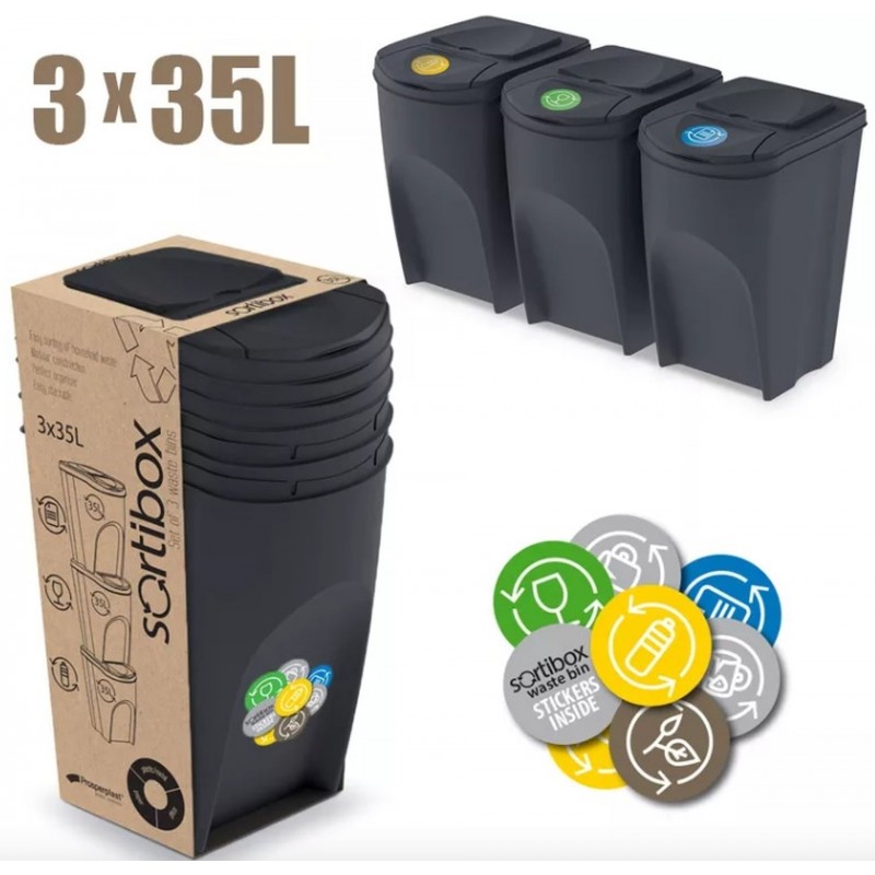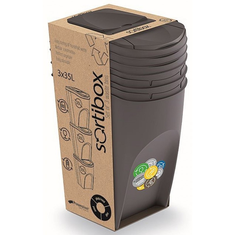 - Pro odeslání do Česka navštivte Prosperplast SORTIBOX Sada 3 odpadkových košů 3x35l, šedý kámen IKWB35S3