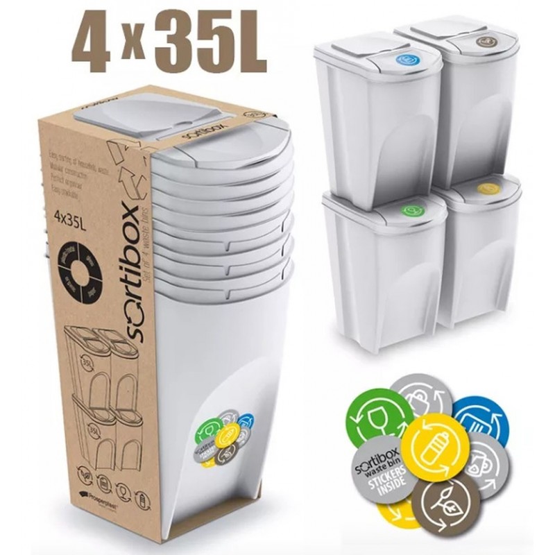 - Pro odeslání do Česka navštivte Prosperplast SORTIBOX Sada 4 odpadkových košů, 4x35l, bílá IKWB35S4