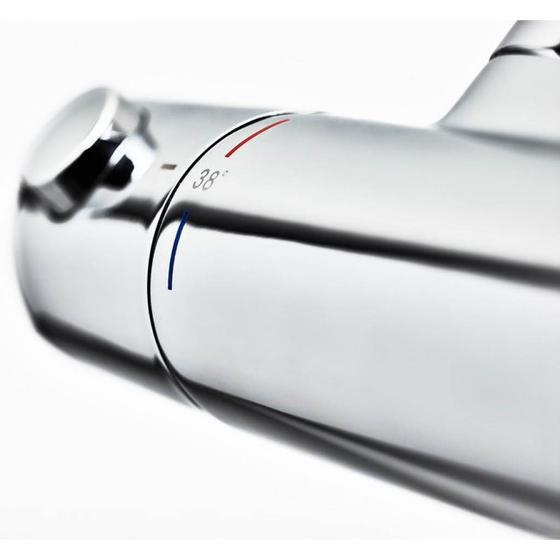 Perfektes Design mit außergewöhnlich praktischer Funktionalität. Dank der hochwertigen Thermokartusche überwacht die Armatur beim Duschen die eingestellte Wassertemperatur automatisch. Sie gleicht Druckschwankungen in der Rohrleitung und der Wassertemperatur sofort aus und sorgt dafür, dass das Wasser immer genauso warm fließt, wie Sie es eingestellt haben. Wer einmal eine Thermostat-Armatur ausprobiert, möchte keine andere mehr.