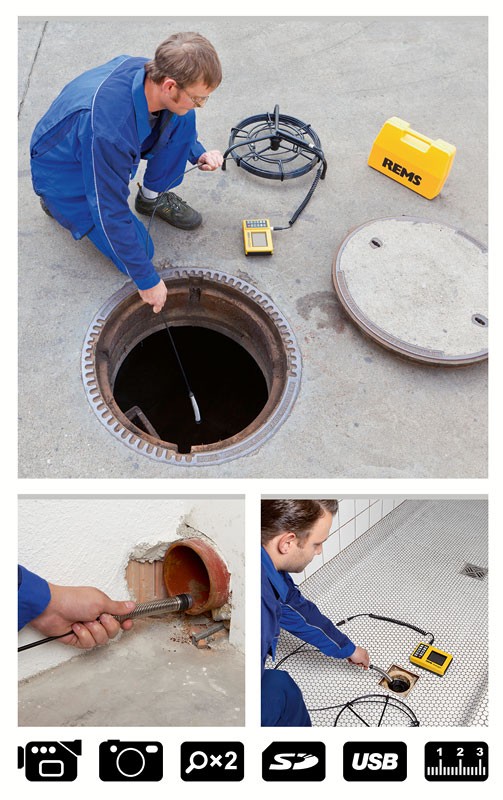 REMS CamSys Set S-Color. Elektronisches Kamera-Inspektionssystem zurkostengünstigen Inspektion und Schadenanalyse. Dokumentation von Bildern