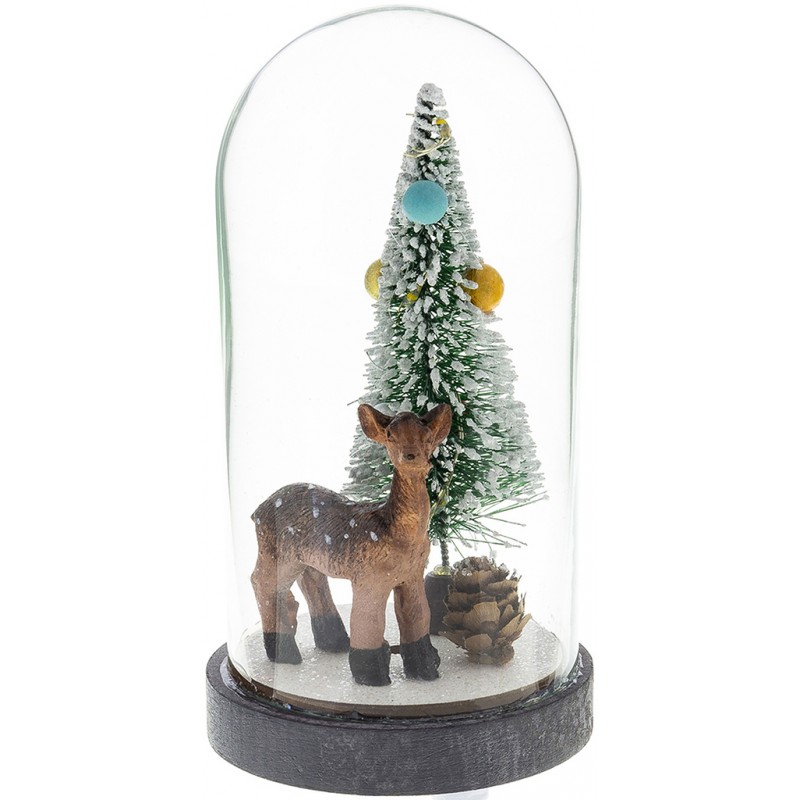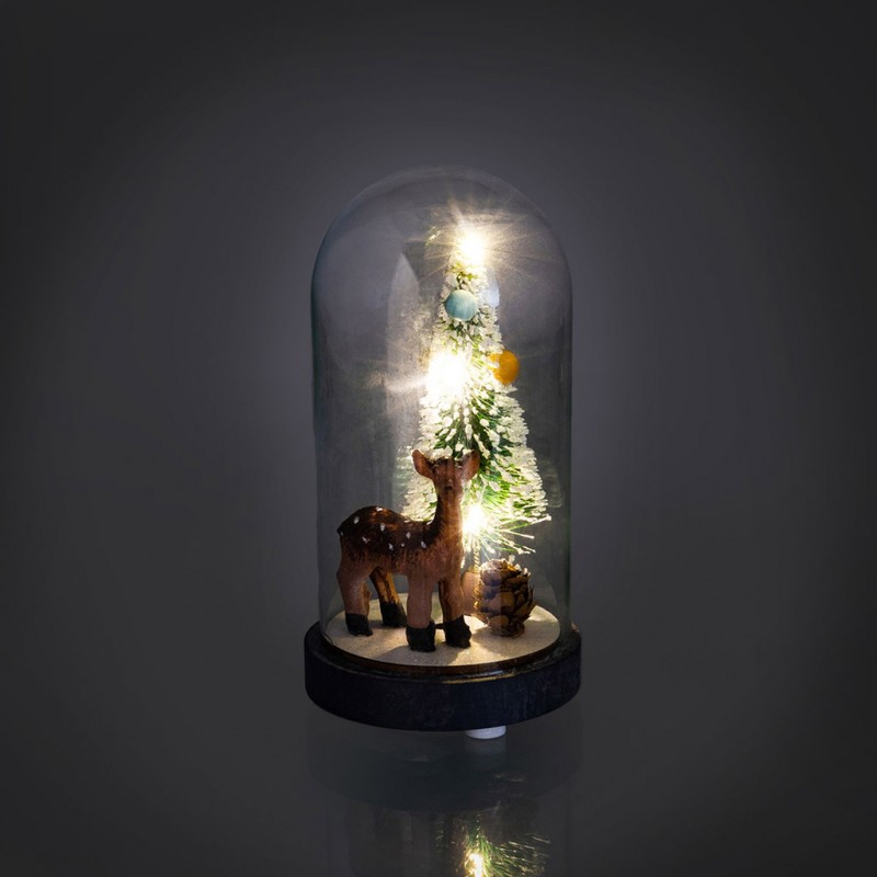 RETLUX RXL 318 Schneekugel 3 LED Damhirschkuh WW 50003913- Weihnachtsglaskuppel mit Holzdekor