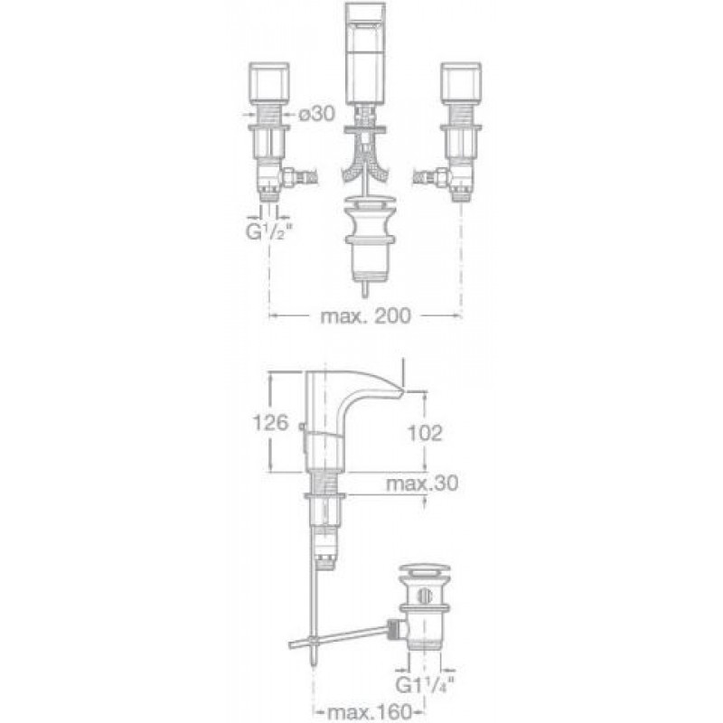 Roca Thesis Dreiloch-Waschtischarmatur, chrom 75A4450C00