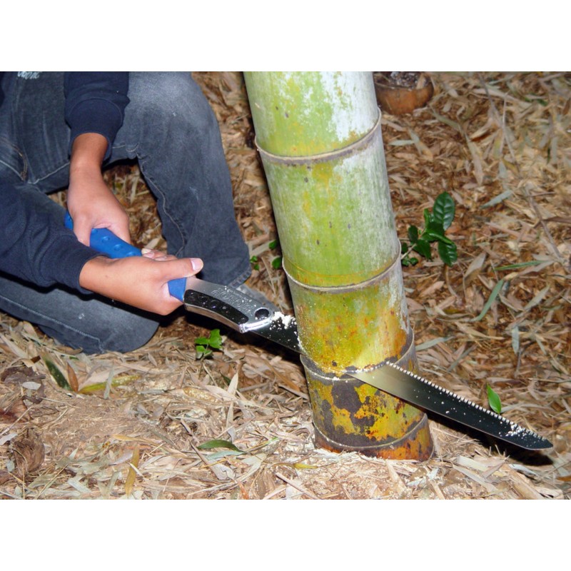 Die Bigboy ist kompakt und leicht für einfachen Transport und Lagerung. Das Blatt kann mit dem Verriegelungshebel einfach entfaltet und gefaltet werden und bietet zwei Sägepositionen. Der Gummigriff sorgt für einen sicheren und komfortablen Halt und ist groß genug für beidhändiges Sägen. Das Loch im Griff ermöglicht die Befestigung von Karabiner oder Seil.