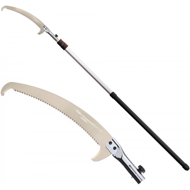 Beschneiden aus der Ferne erfordert eine zuverlässige und vielseitige Säge. Das 390 mm lange, gebogene Sägeblatt der Hayauchi ist mit Silky’s einzigartigen 4-RETSUME Zähnen ausgestattet. Diese Zähne verursachen einen großen Holzverlust, so dass Sie sehr schnell durch die dicksten Äste sägen können und geben Ihnen die Flexibilität, um in alle Richtungen in Bezug auf die Holzmaserung zu sägen. Ideal für größere Aufträge! Das Sägeblatt ist in zwei verschiedenen Winkeln für Hoch- und Tiefschneiden einstellbar.