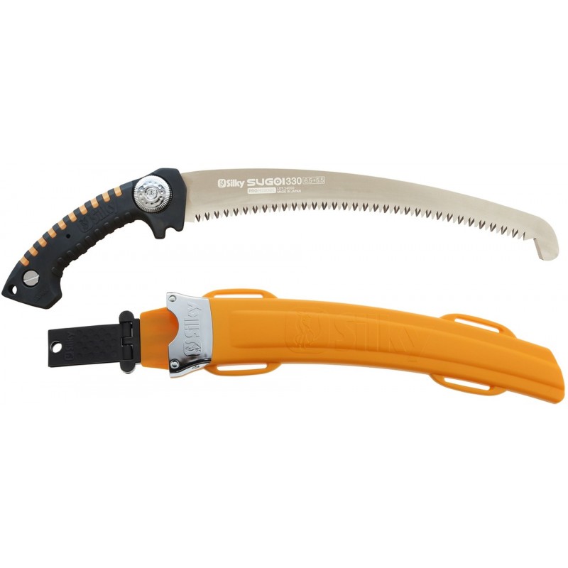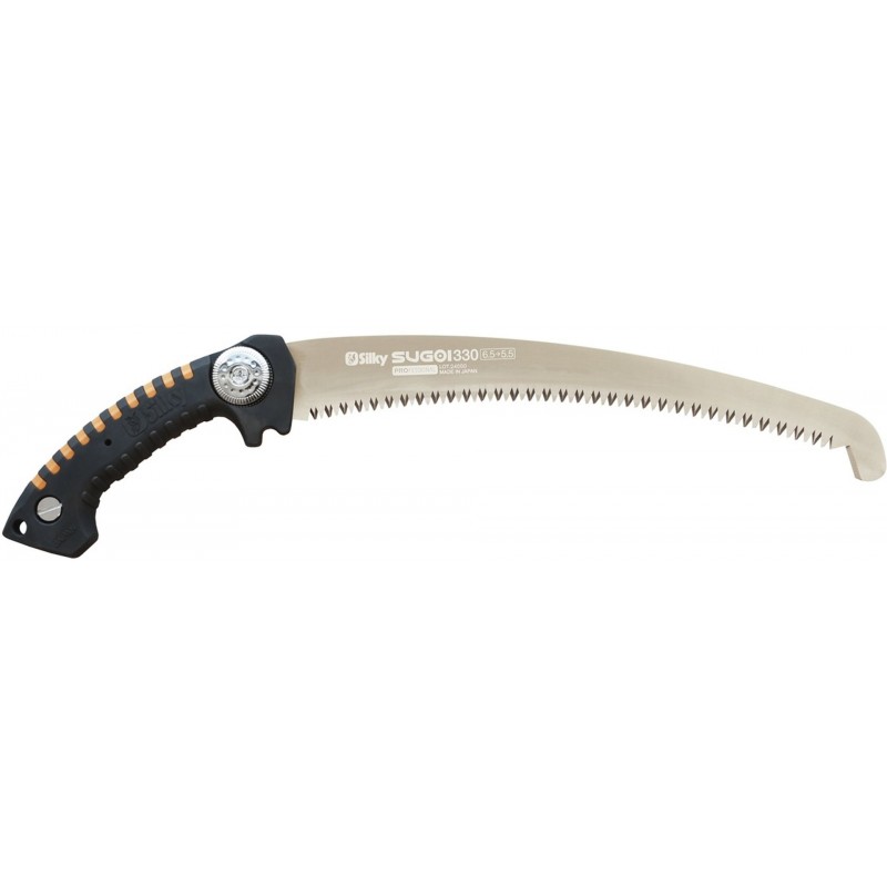 Die Sugoi eignet sich sowohl für das Schneiden von frischem Holz als auch für das Entfernen von toten Ästen. Das Modell ist in verschiedenen Blattlängen erhältlich (330, 360 und 420 mm). Die Zähne bleiben, wie bei allen Silky Sägen, lange scharf und können bei Bedarf mit der Silky Feile nachgeschärft werden.
