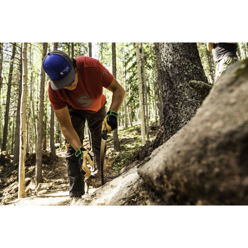 Auch größere Arbeiten wie das Fällen von Bäumen oder das Sägen dicker Stämme stellen für die Sugoi kein Problem dar. Das perfekt gebogene Sägeblatt besteht aus einer speziellen Legierung, wodurch die Säge stark, aber dennoch flexibel bleibt. Die Sugoi sägt schnell und ohne Vibrationen und hinterlässt eine glatte Schnittfläche, die optimal verheilen kann.