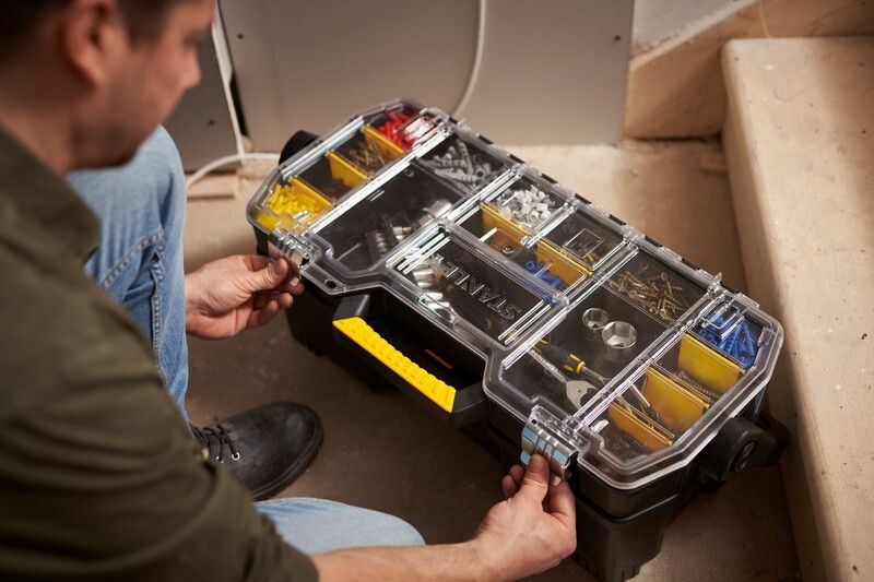 - Komplette Werkzeugbox - alle Vorteile einer Werkzeugtrage plus zusätzlichem, getrennt verwendbarem Aufsatz