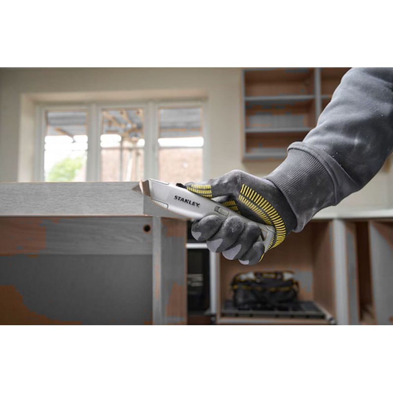 Stanley FatMax FMHT10505-0 ist ein robustes professionelles Messer mit ausziehbarer Klinge, das für präzises und anspruchsvolles Schneiden verschiedener Materialien entwickelt wurde. Das stabile Aluminiumgehäuse und das ergonomische Design gewährleisten hohe Haltbarkeit, lange Lebensdauer und komfortable Handhabung. Der integrierte Klingenhalter und das werkzeuglose Wechselsystem ermöglichen eine schnelle und einfache Handhabung während der Arbeit.