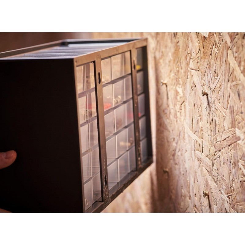 - Kleinteilemagazine können ineinander gesteckt werden – für ein flexibles, modulares Aufbewahrungssystem