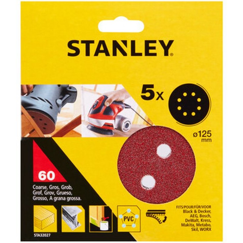 Stanley STA32027-XJ Schleifblatt für Exzenterschleifer 125mm, P60, 5 Stück