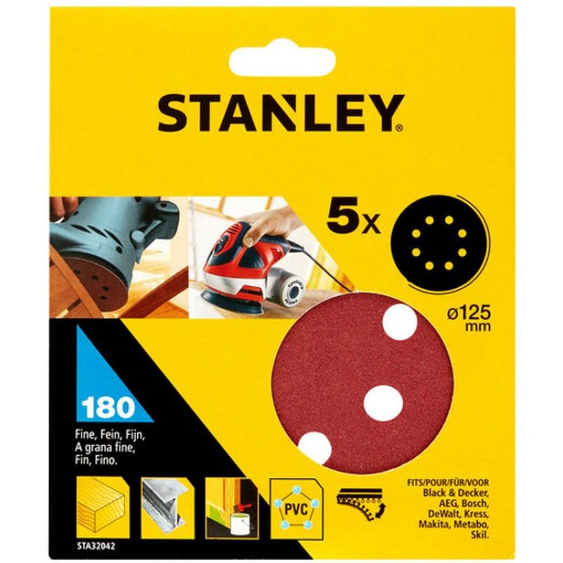 Stanley STA32042-XJ Schleifblatt für Exzenterschleifer 125mm, P180, 5 Stück