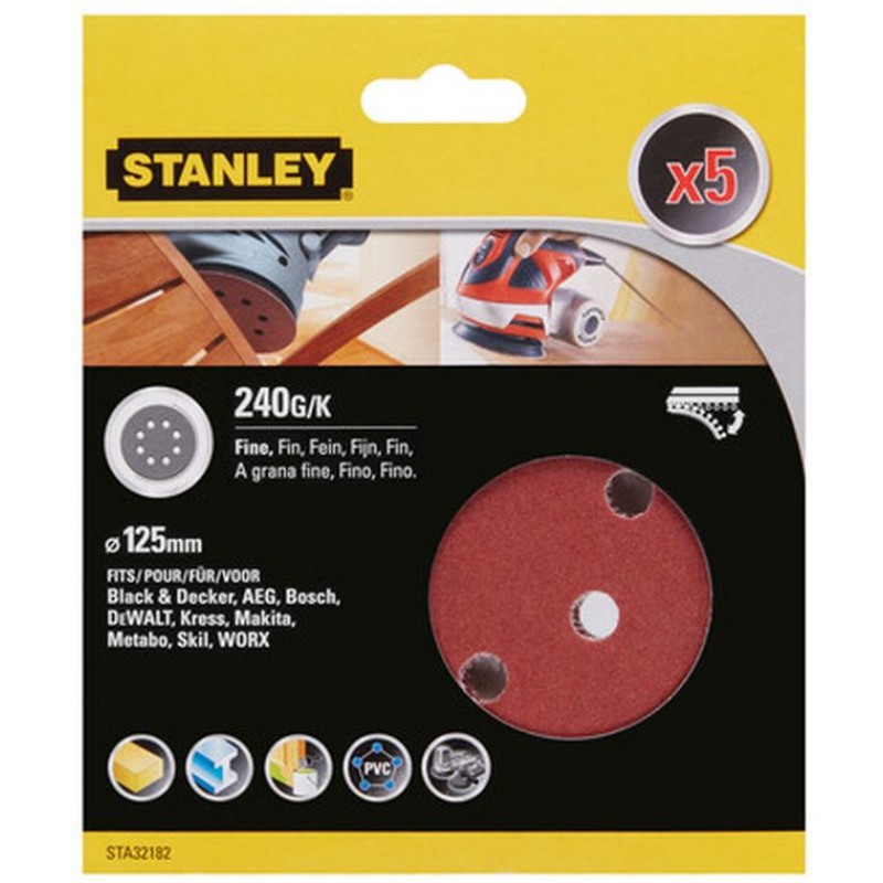 Stanley STA32182-XJ Schleifblatt für Exzenterschleifer 125mm, P240, 5 Stück