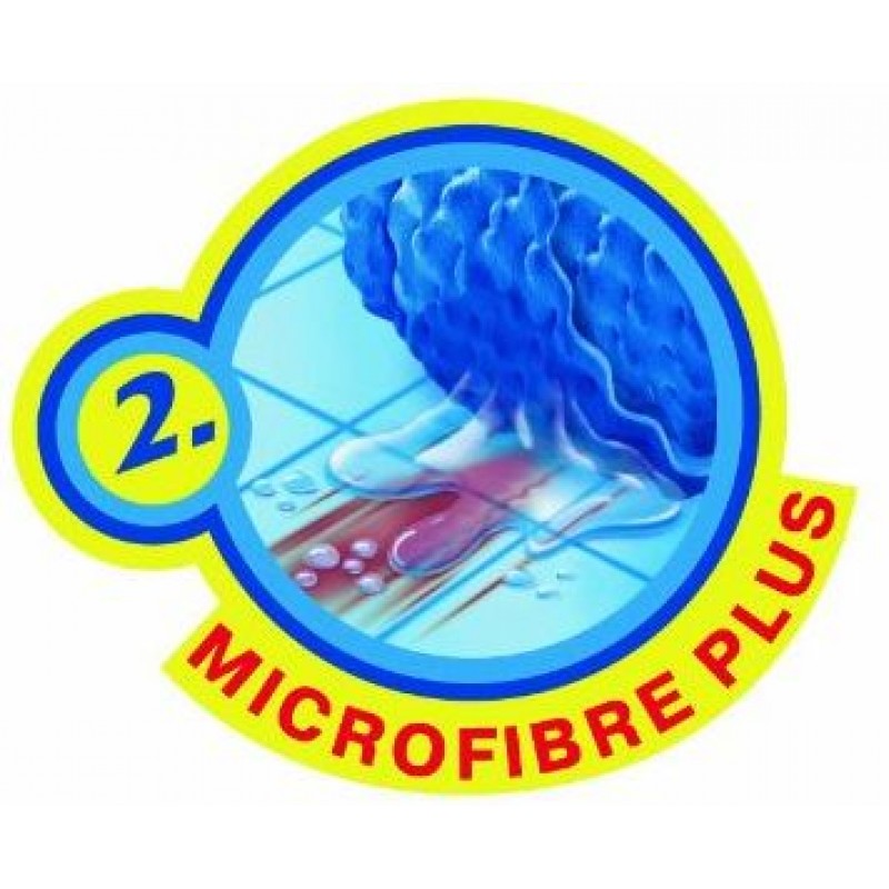 Direkt loslegen mit dem SuperMocio Komplett-Set: Eimer mit Powerpresse, Wischmop und dreiteiligem StielWischmop mit hohem Mikrofaseranteil löst Schmutz und Fett und benötigt dabei weniger chemikalische Reinigungsmittel